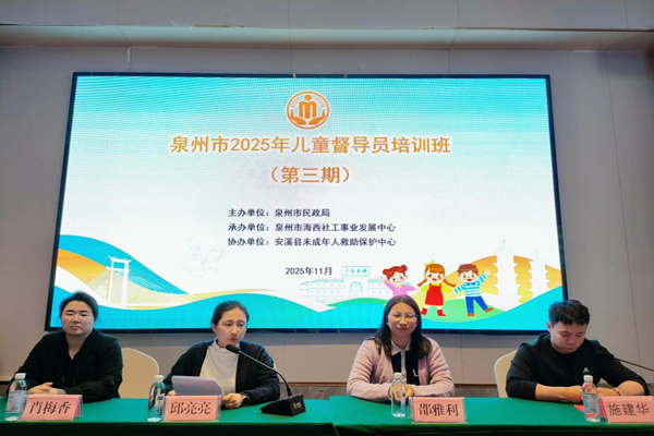 为深入贯彻落实民政部、省民政厅关于困境儿童关爱保护的工作部署,提升全市基层儿童福利工作队伍专业素养与履职能力,11月26日至28日,泉州市民政局分别在丰泽、晋江、安溪等地分三期举办泉州市2025年儿童督导员培训班,全市儿童督导员、各县(市、区)民政相关负责人及未成年人救助保护机构负责人等200余人参加。